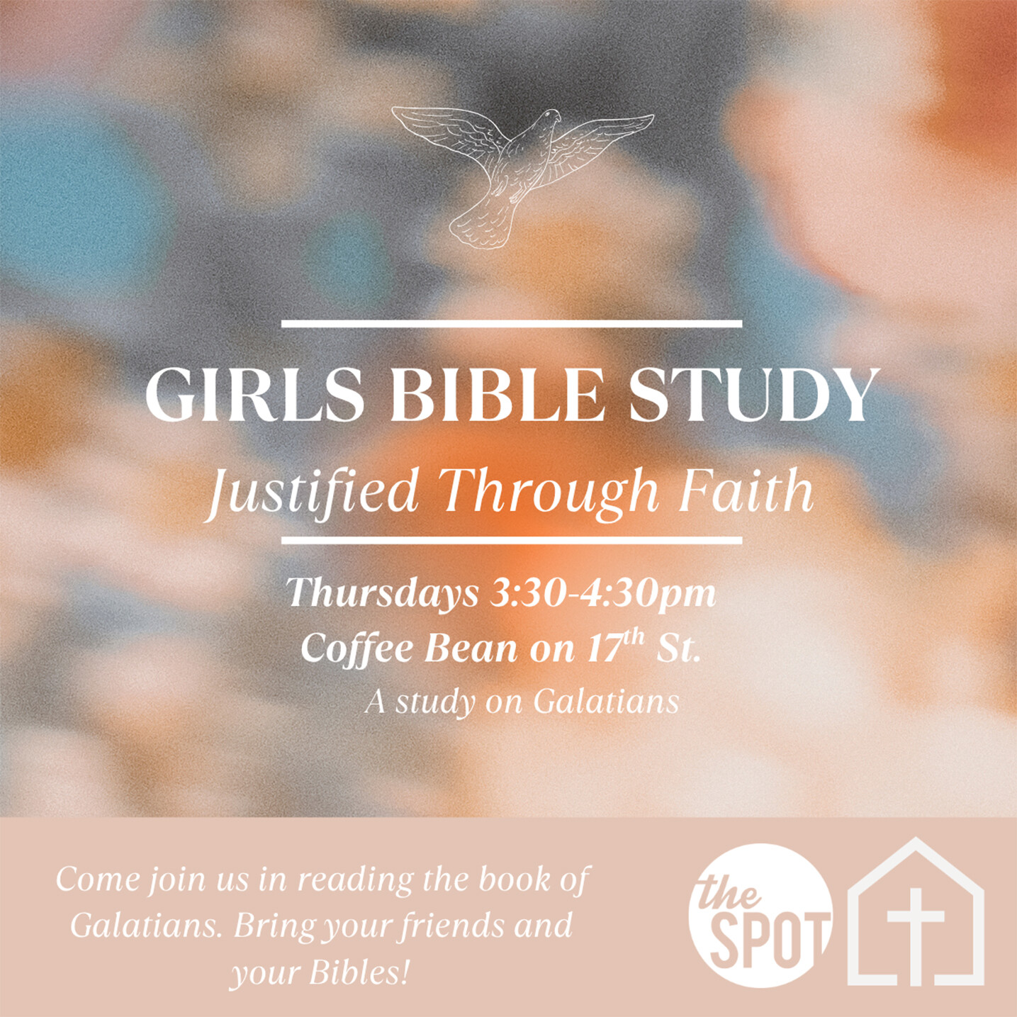 Hey ladies! Marysol is starting a new Girls Bible Study in the book of Galatians to discover what it really means to live free in Christ! Together we’ll unpack Paul’s letter about grace, identity, and how God’s love sets us free. Please bring $5 to cover the cost of your book and some extra money if you want a drink of snack!