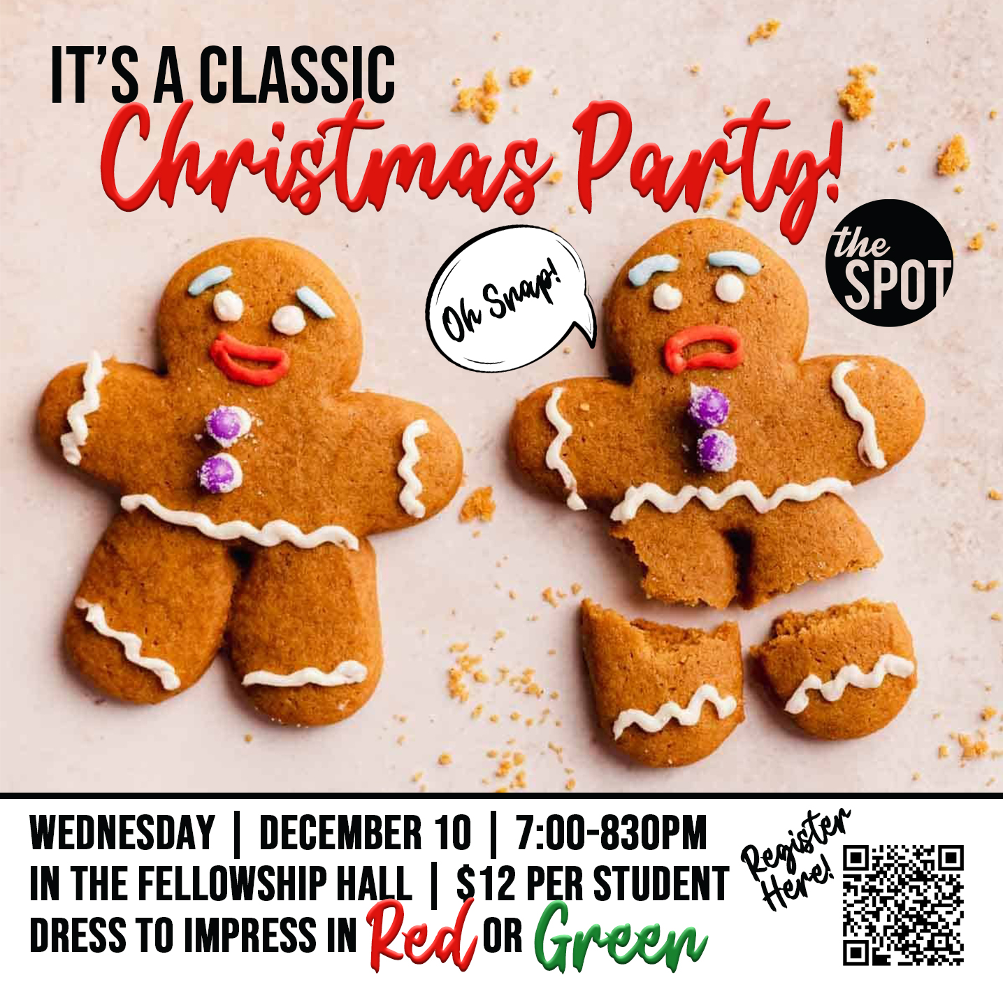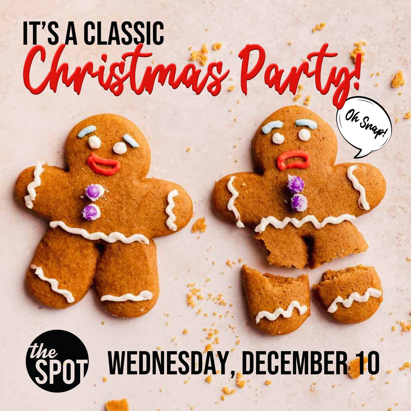 Oh Snap...It's a Classic Christmas Party! You're invited to the Spot for a night of dinner, dessert, prizes, and more! It will be a night to remember! Dress to impress in RED or Green! BAB!